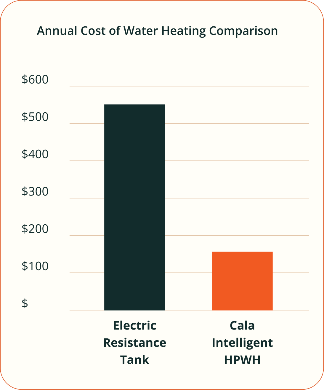 A family of four in Florida spends about $522/year on water heating. Cala cuts that by up to 75%.