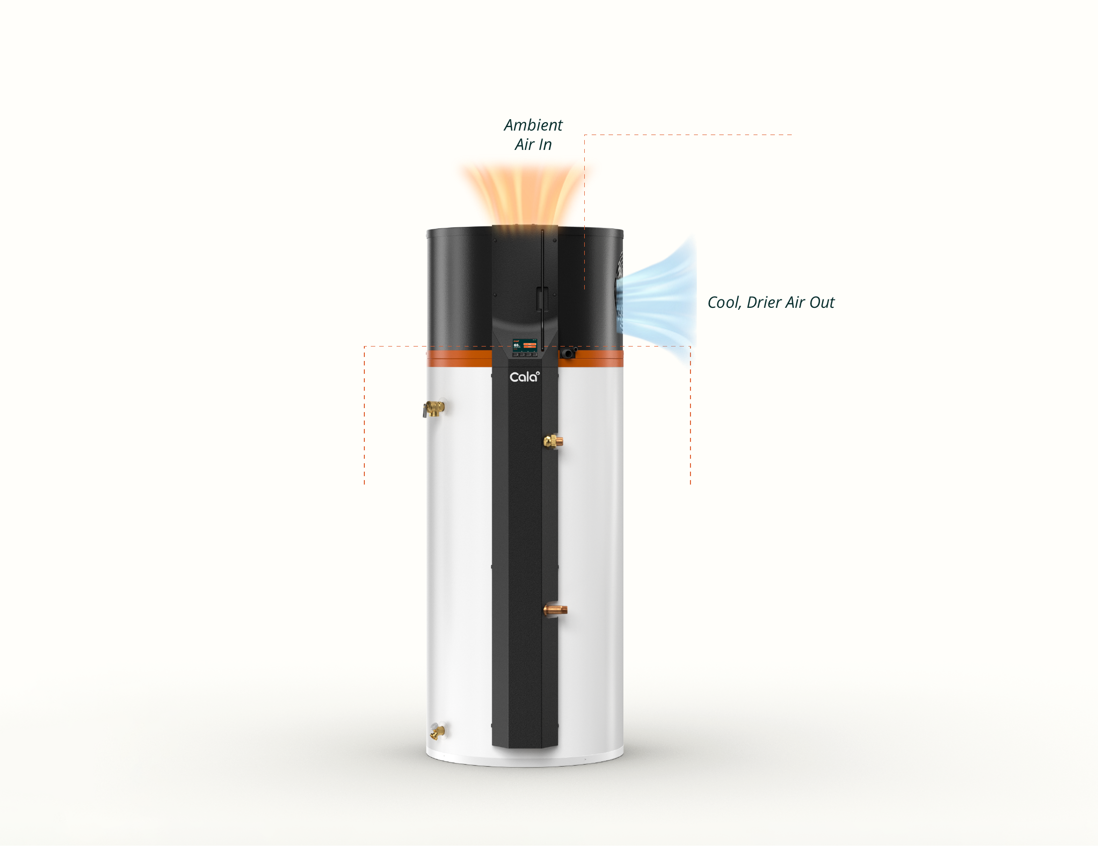 Cala uses a heat pump, like the one in an air conditioner, to efficiently transfer heat from the air to the water.